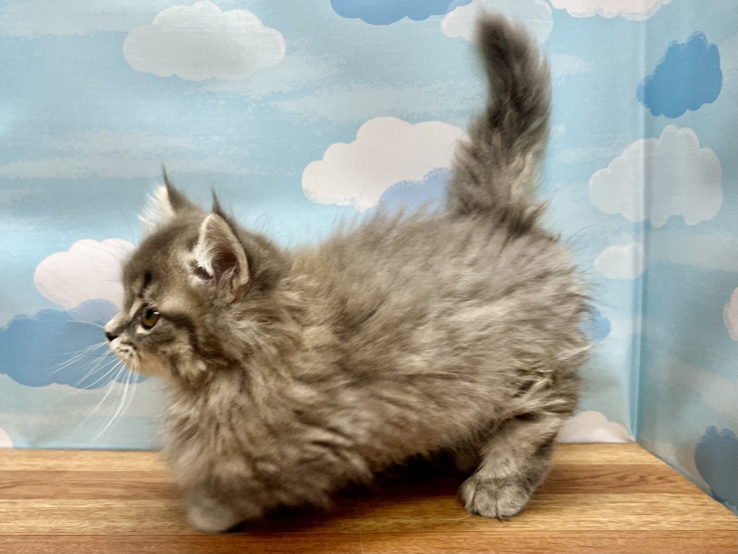 胴長短足マンチカンくんの長毛版! ただでさえ可愛いシルエットが長い毛のおかげでもっともっと可愛くなっちゃいました!